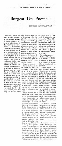 Sobre la poesía de Borges [artículo] Tulio Mendoza Bello.