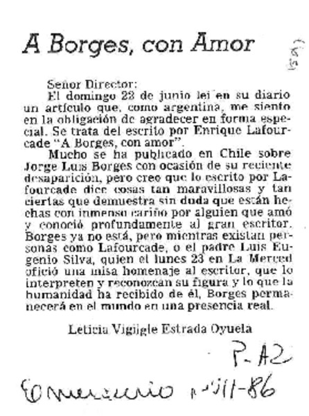 A Borges, con amor [artículo] Leticia Vigil de Estrada Oyuela.