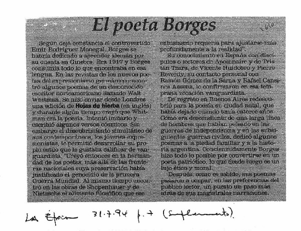 Borges, Borges, Borges... [artículo] Leo Bedezko