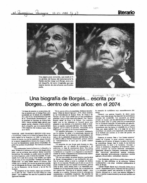 Una Biografía de Borges... escrita por Borges... dentro de cien años: en el 2074. [artículo].
