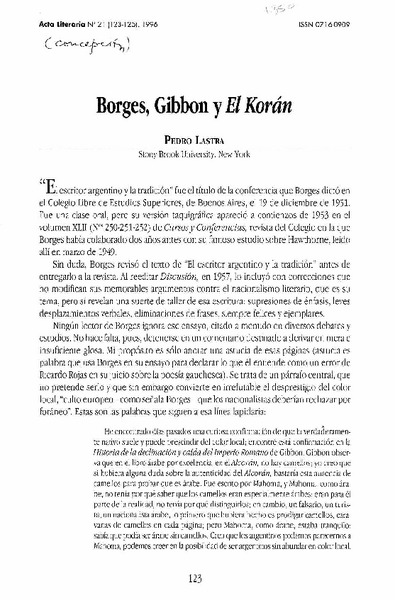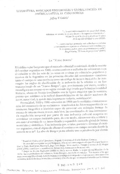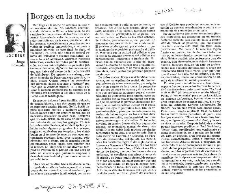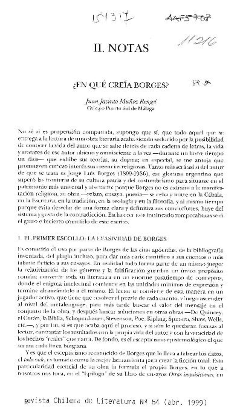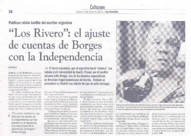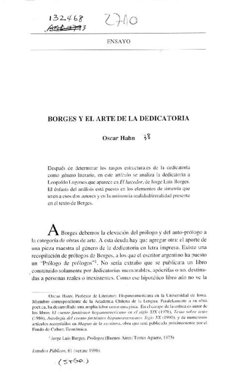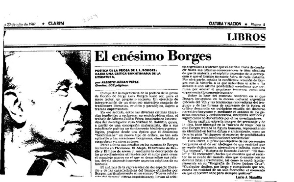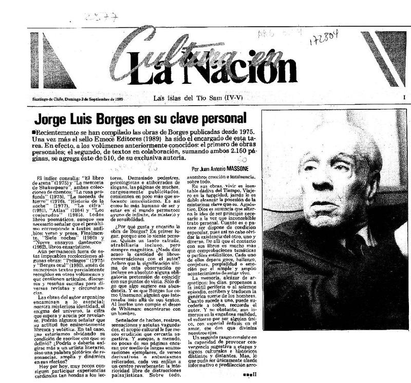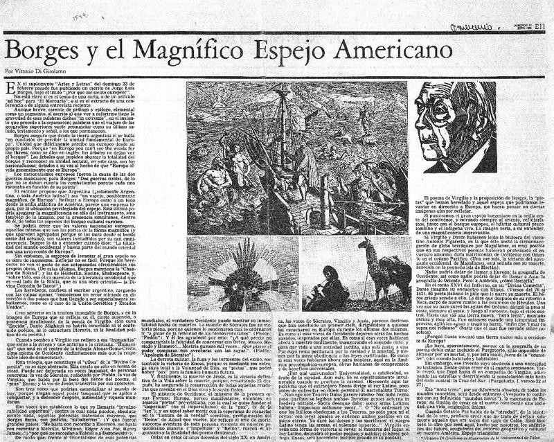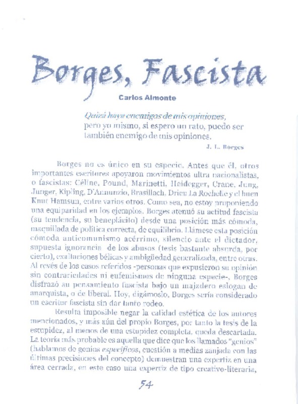 Borges, agonismo y epigonía [artículo] Eduardo Sabrovsky.