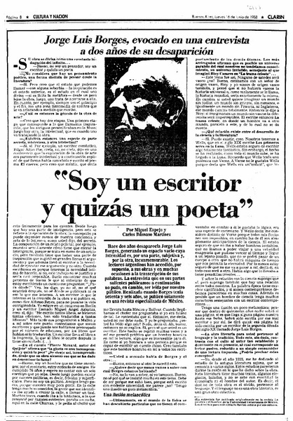 Soy un escritor y quizás un poeta" [artículo] Miguel Espejo <y> Carlos Dámaso Martínez.