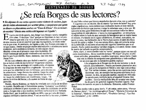 Vial, Sara - Autores argentinos - Borges, Jorge Luis - Autoras chilenas