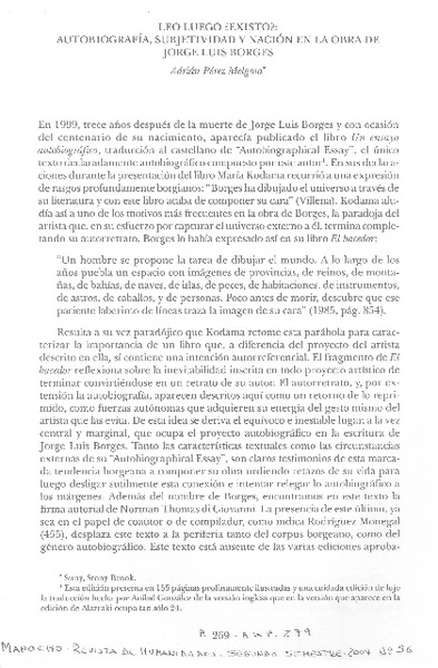 Autores argentinos - Borges, Jorge Luis - Autores chilenos - Borges, agonismo y epigonía - Pérez Villalobos, Carlos