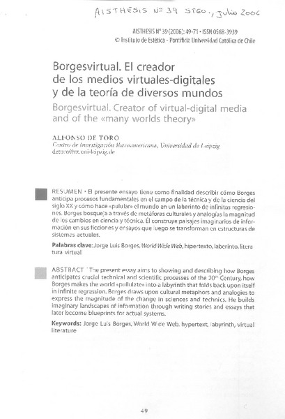 Borges : crónicas y ensayos de ayer [artículo] Wellington Rojas Valdebenito.