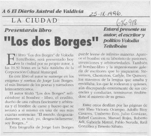 Borges, Jorge Luis - TEITELBOIM, VOLODIA - DOS BORGES