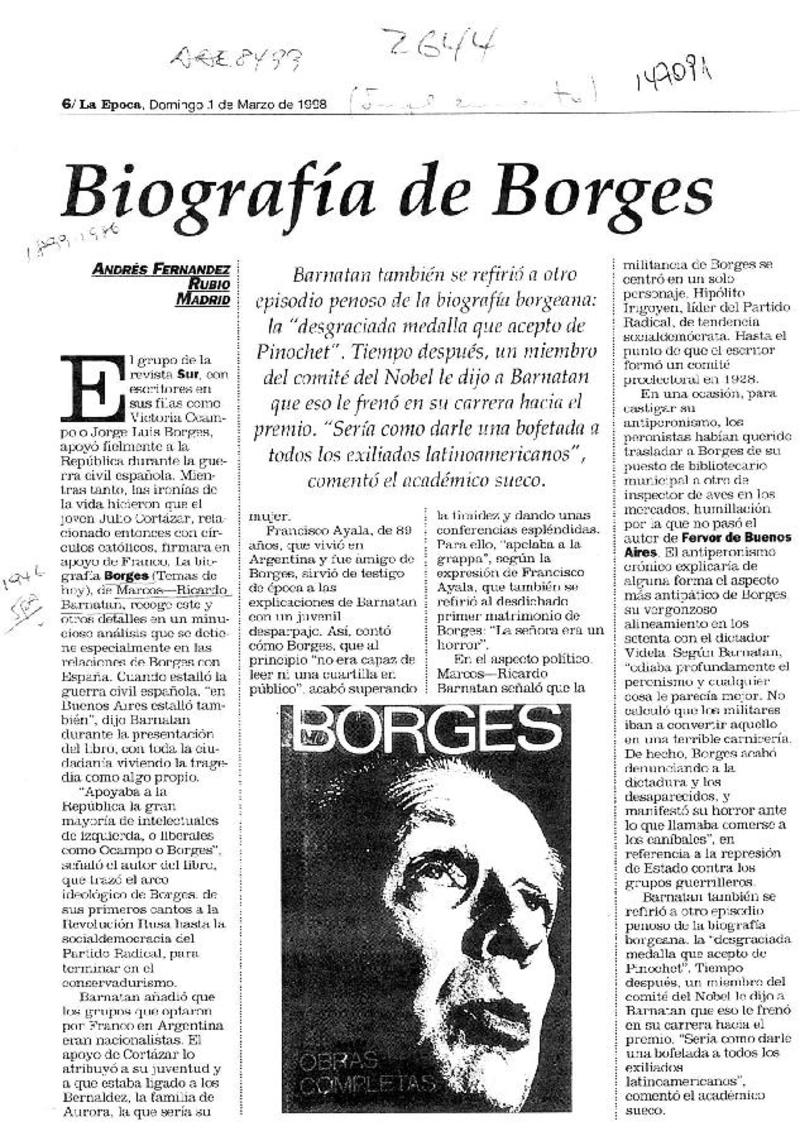 Biografía de Borges [artículo] Andrés Fernández Rubio.