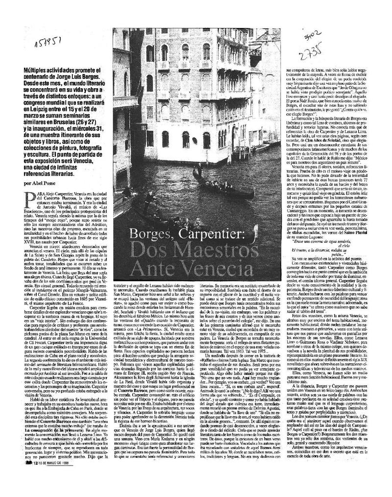 Borges, Carpentier, dos maestros ante Venecia [artículo] Abel Posse.