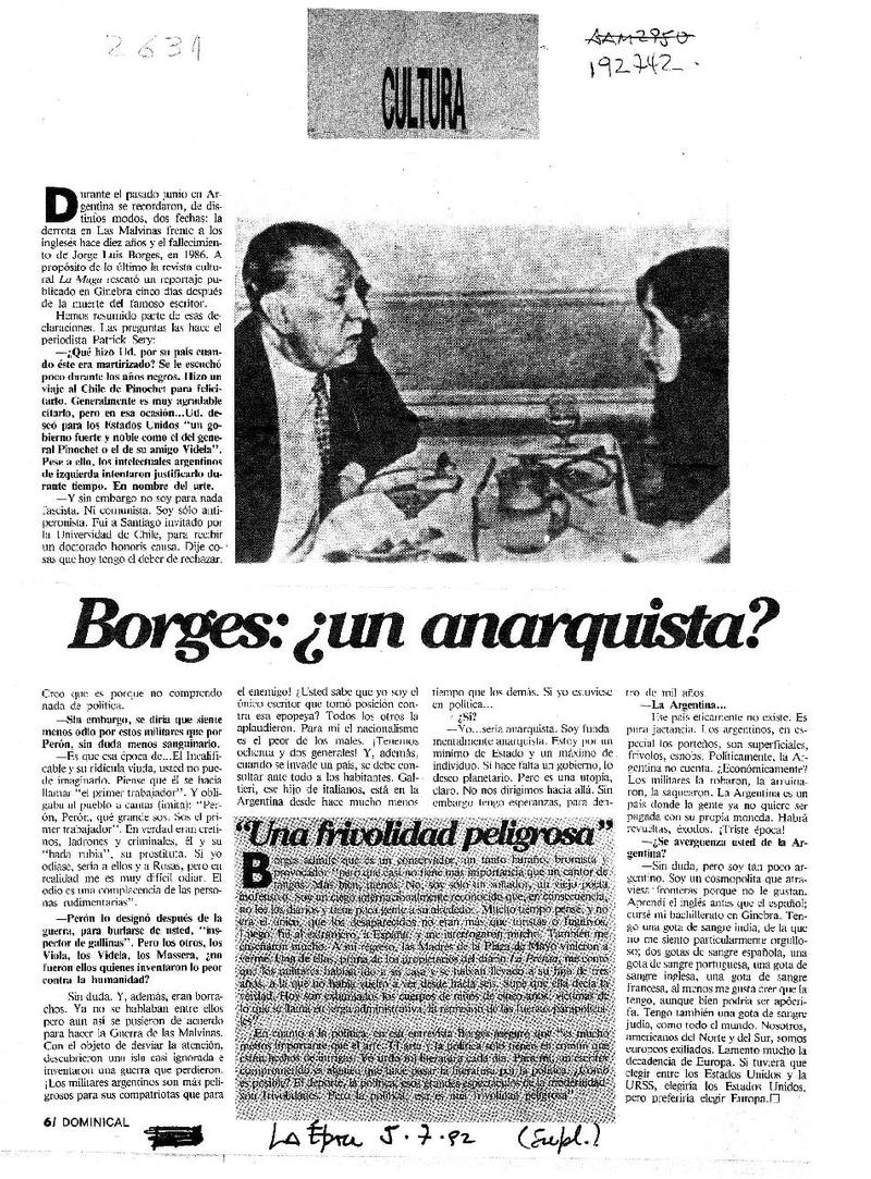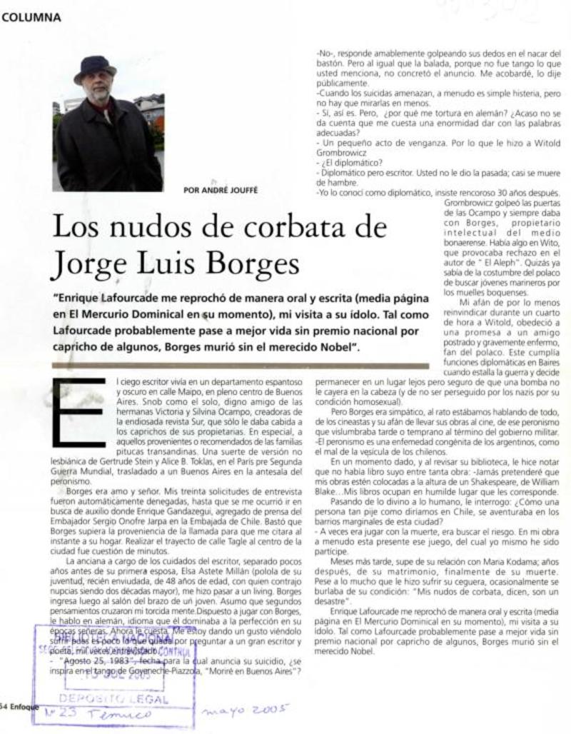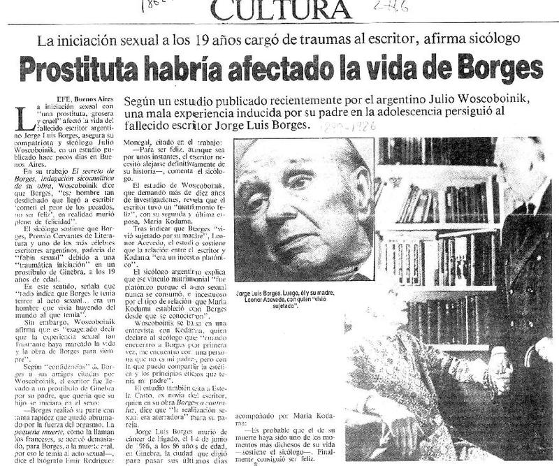 Acusan a Borges de morir virgen [artículo] Sergio Tanhnuz.
