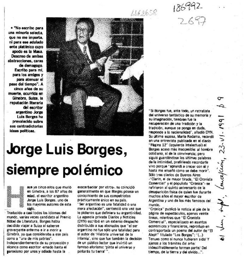 Se casó escritos argentino Jorge Luis Borges. [artículo]