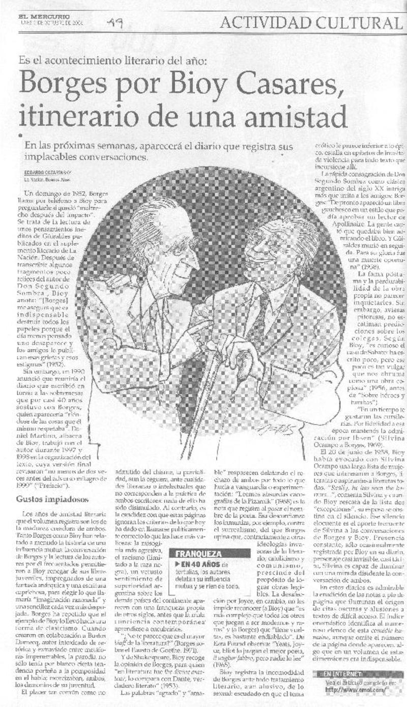 Bioy Casares, Adolfo - Autores argentinos - Borges, Jorge Luis