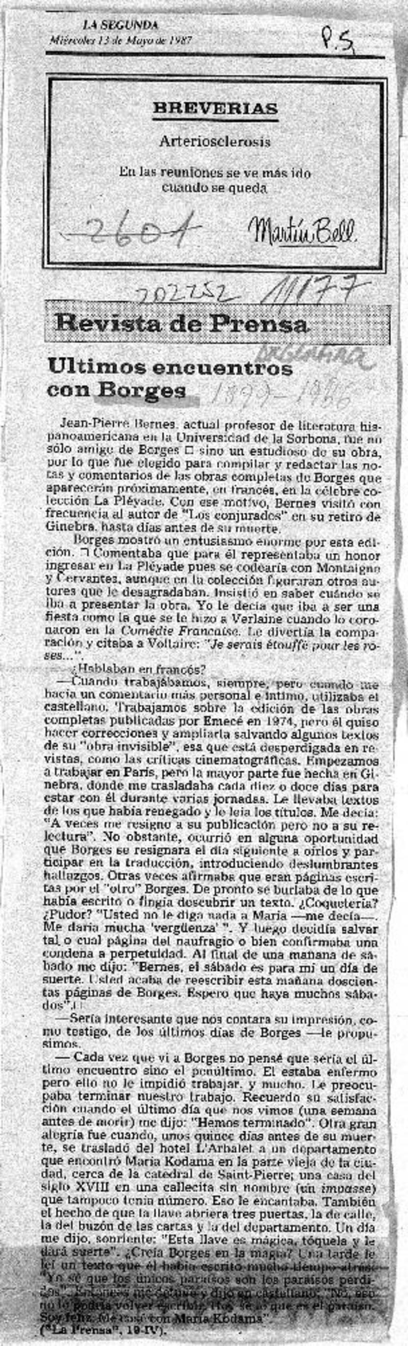 Últimos encuentros con Borges [entrevista] [artículo] : Martín Bell.