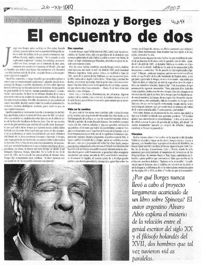 Spinoza y Borges, el encuentro de dos hombres quietos [artículo] Álvaro Abós.