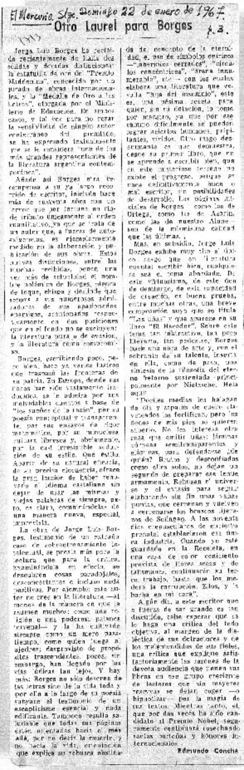 Siguen alabanzas para la obra de Jorge Luis Borges [artículo]