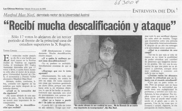 Max-Neef perdió rectoría de la U. Austral por 17 votos [artículo]