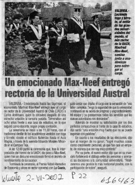 Un emocionado Max-Neef entregó rectoría de la Universidad Austral [artículo].