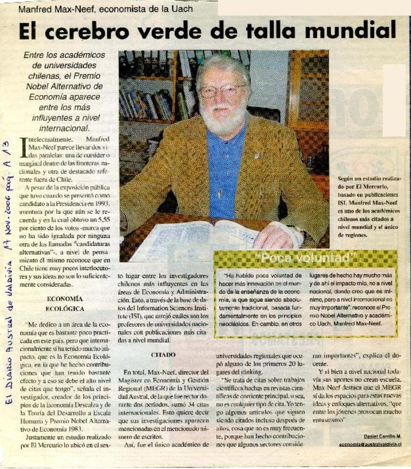 Manfred Max-Neef, "Siempre fui alternativo" [artículo] Margarita Serrano.