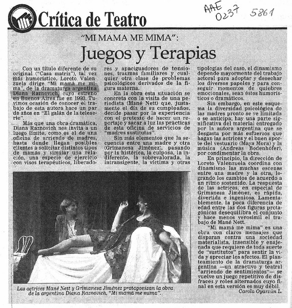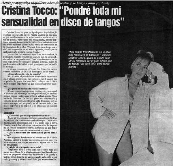 Bibi Andersen protagonizará obra de argentina Diana Raznovic el próximo año [entrevista] [artículo] : J. I. V.