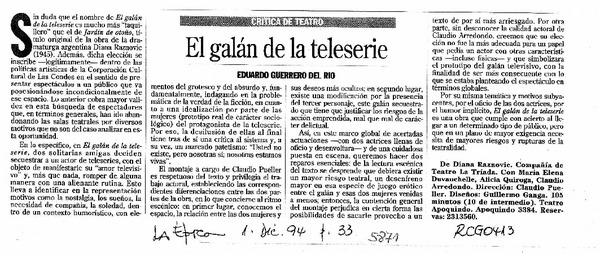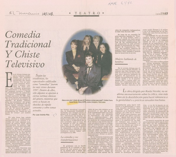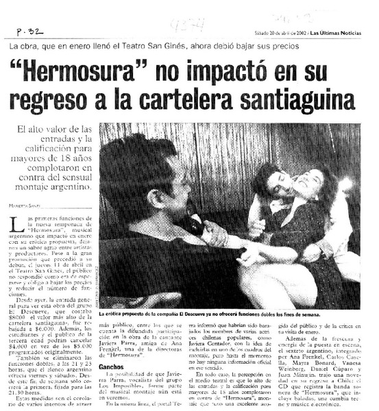 Un galán raptado en Teatro Apoquindo. [artículo]
