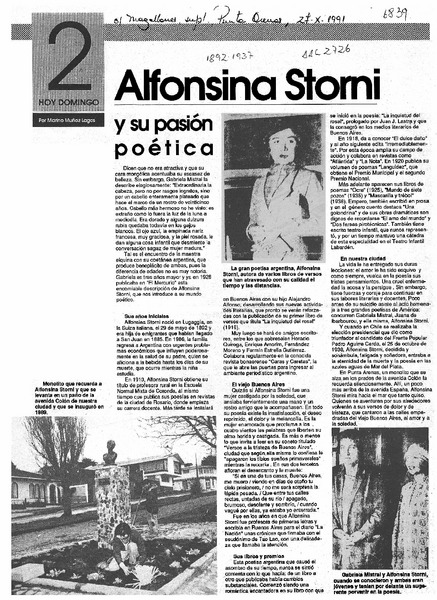 Alfonsina Storni y su pasión poética [artículo] Marino Muñoz Lagos.