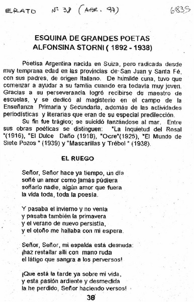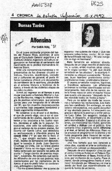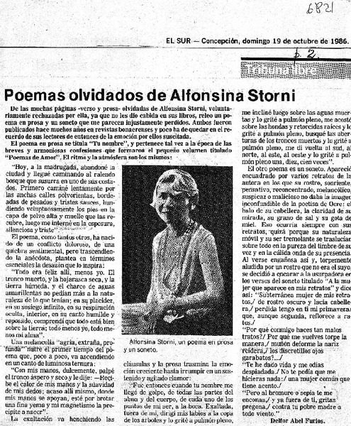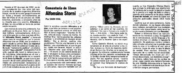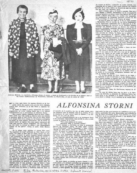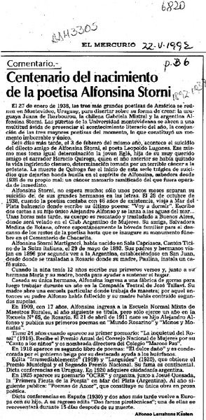 Centenario del nacimiento de la poetisa Alfonsina Storni [artículo] Alfonso Larrahona Kästen.