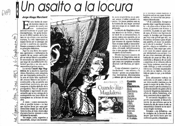 Un asalto a la locura [artículo] Jorge Aliaga Marchant.
