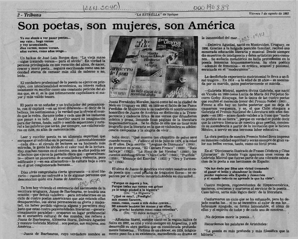 Mistral, Gabriela - Agustini, Delmira - Autoras uruguayas - Ibarbourou, Juana de - Storni, Alfonsina - Autoras argentinas - Autoras chilenas