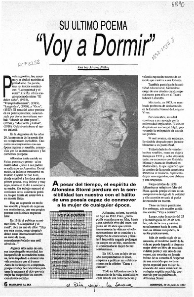 Su último poema "Voy a dormir" [artículo] Ana Iris Alvarez Núñez.
