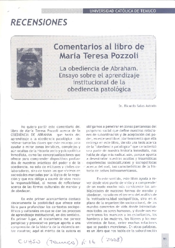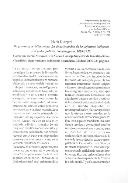 Reseña de libros [artículo] Marino Muñoz Lagos.