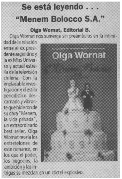 Autoras argentinas - Wornat, Olga - Menem-Bolocco S.A.