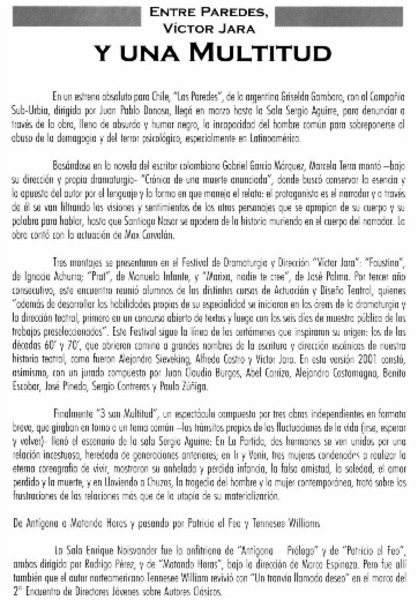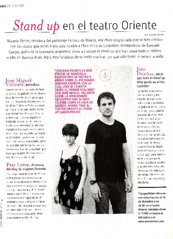 Stand up en el Teatro Oriente [artículo] Carola Solari.