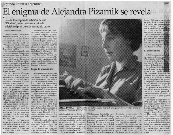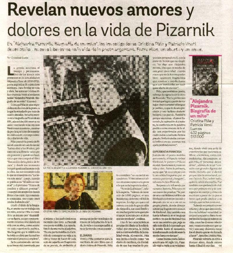 Revelan nuevos amores y dolores en la vida de Pizarnik [artículo].