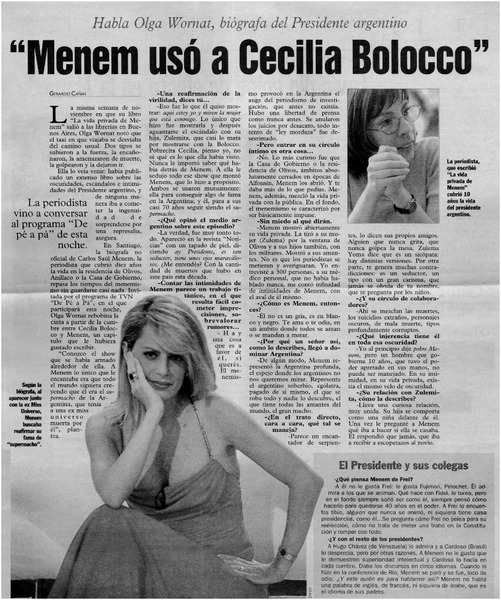 Cecilia encontró evidencias de infidelidad de Menem" [artículo] Patricia Cerda.