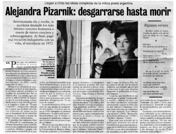 Alejandra Pizarnik, desgarrarse hata morir [artículo] Rodrigo Castillo.