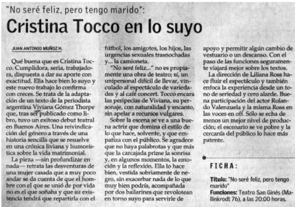 Se ríe de sí misma todo el año [artículo] Isabel Barros.