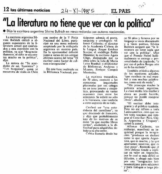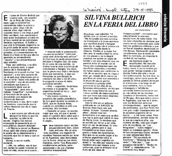 Silvina Bullrich en la fería del libro [artículo] Carlos Iturra.