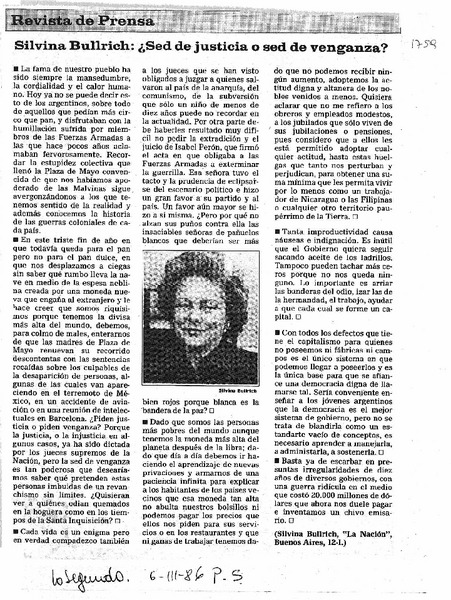 Silvina Bullrich: ¿Sed de justicia o sed de venganza?. [artículo]