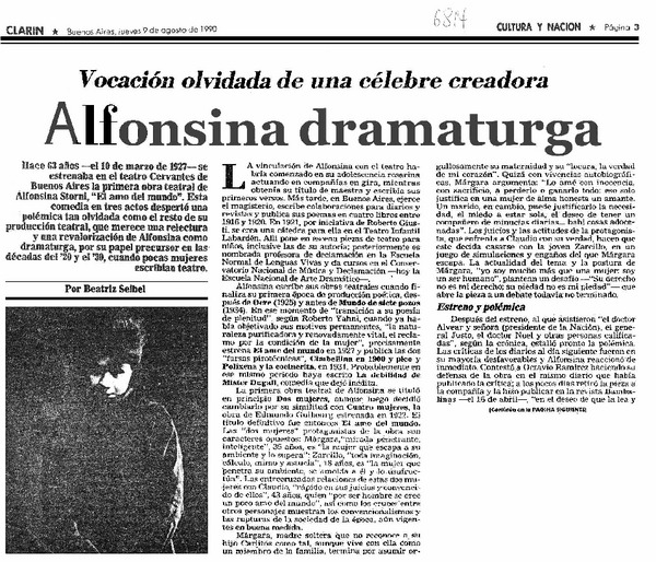 Alfonsina dramaturga [artículo] Beatriz Seibel.