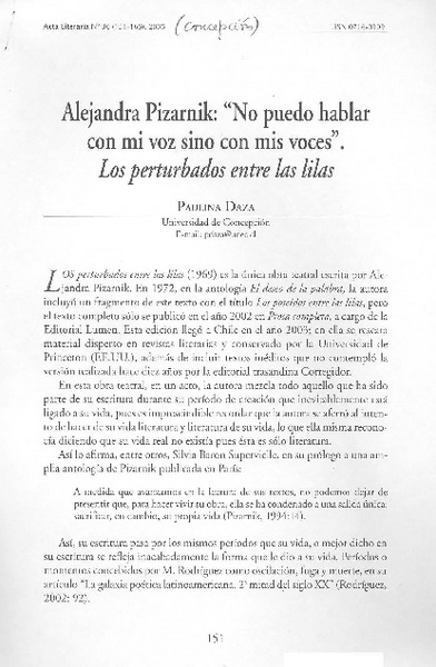 Alejandra Pizarnik: "no puedo hablar con mi voz sino con mis voces" [artículo] Paulina Daza