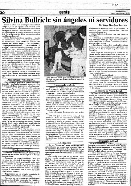 Silvina Bullrich: sin ángeles ni servidores [artículo] Jorge Marchant Lazcano.