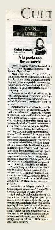Alejandra Pizarnik: flor, mito de la poesía Argentina, publicada en la revista "Caballo de fuego" [artículo] Gloria González Melgarejo.