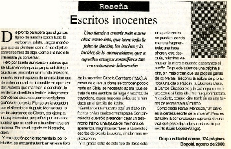 Adiós a la inocencia [artículo] Marclo Macellari.