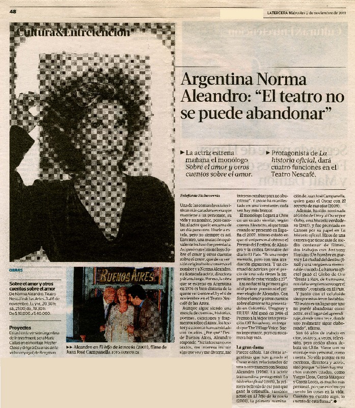 Argentina Norma Aleandro [artículo] Estefanía Etcheverría.