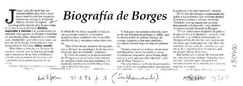 Borges, Jorge Luis - Autores argentinos - Autoras argentinas - Vázquez, María Esther - Borges, esplendor y derrota
