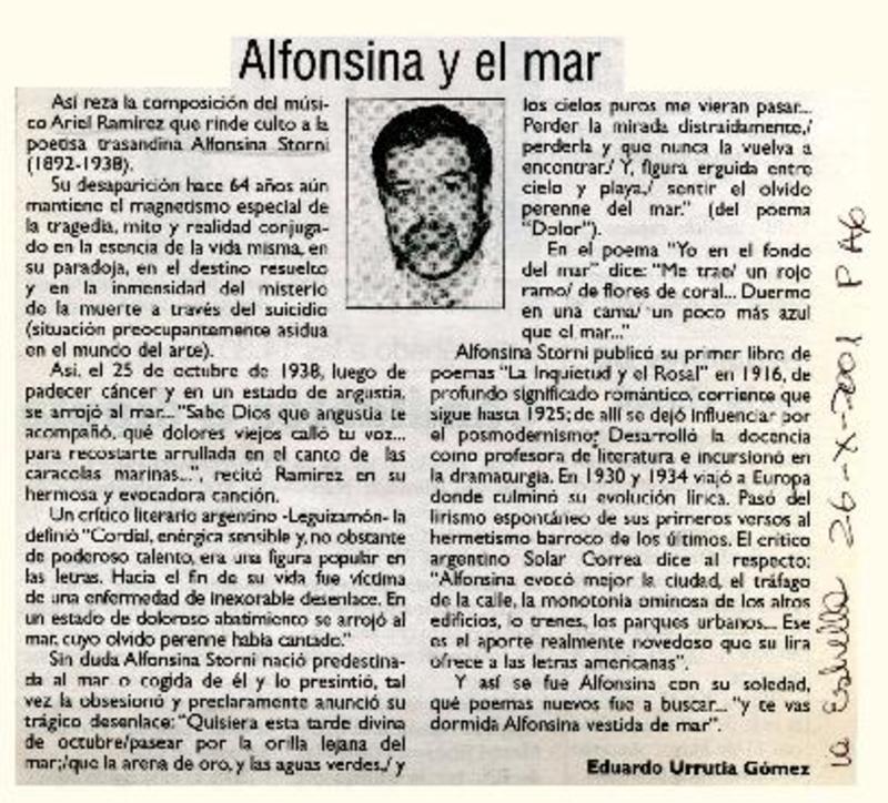 Alfonsina y el mar [artículo] Eduardo Urrutia Gómez.