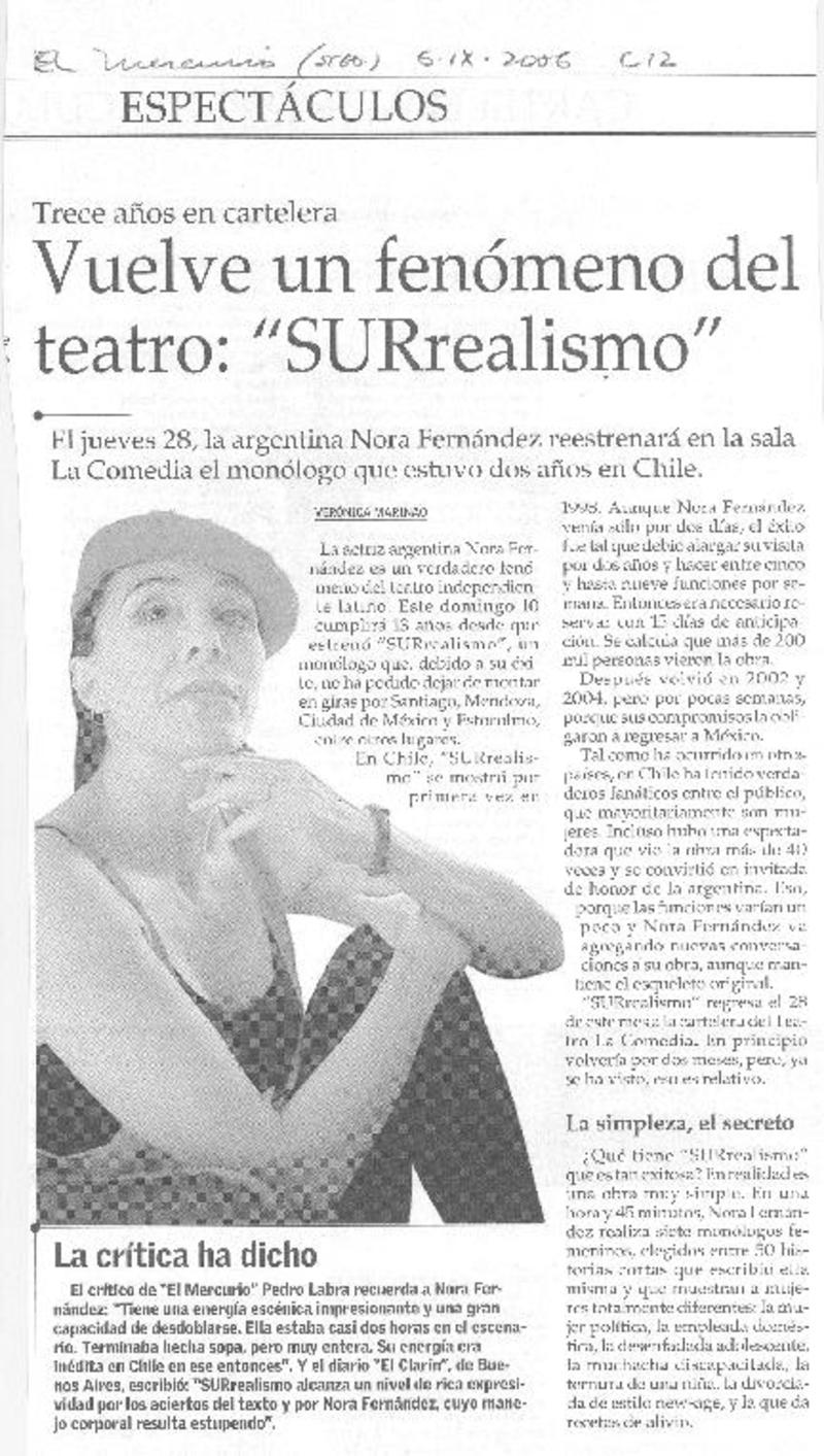 Vuelve un fenómeno del teatro: "SURrealismo" [artículo] Verónica Marinao.