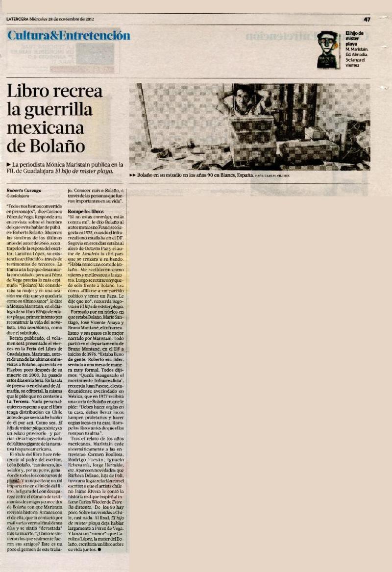Autores chilenos - Entrevistas - Autoras argentinas - Bolaño, Roberto - Maristain, Mónica - El hijo de Mister Playa
