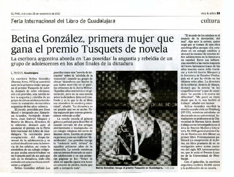 Betina González, primera mujer que gana el premio Tusquets de novela [artículo] Luis Prados