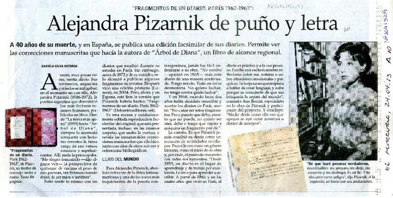 Alejandra Pizarnik de puño y letra [artículo] Daniela Silva Astorga.