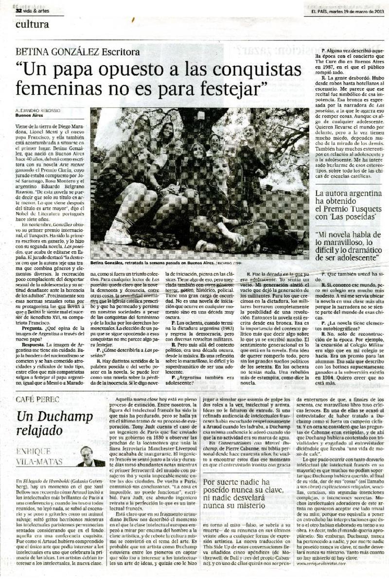 "Un papa opuesto a las conquistas femeninas no es para festejar" (entrevistas) [artículo] Alejandro Rebossio.